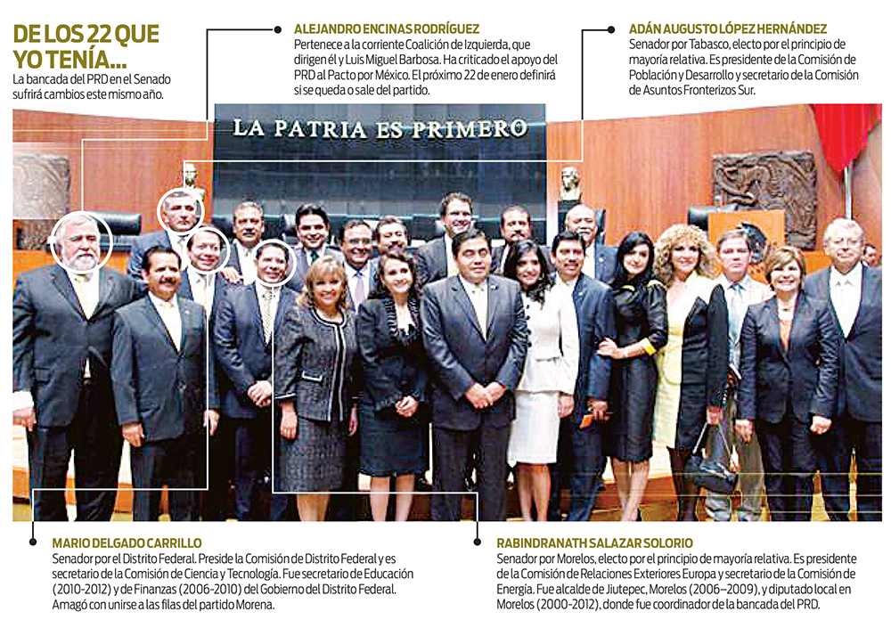 Los 22 integrantes originales del grupo parlamentario del PRD le alcanzaron para presidir 11 comisiones; es decir, el 50% de sus integrantes preside una comisión, sin contar a quienes encabezan las comisiones especiales, y amén de que logró el acuerdo para presidir el Senado. Pero si los tres legisladores que ya se asumen de Morena se van, el tamaño del PRD en el Senado se reducirá a 19 integrantes y, en consecuencia, reducirá sus ingresos ordinarios y el dinero que obtiene por presidir comisiones y tener secretarías de comisiones.
